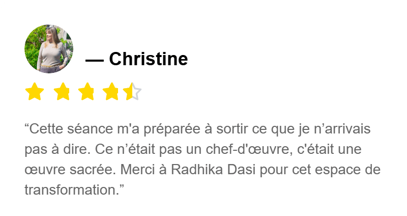 Prestataire : Fusion Créative et Spirituelle - Virginie Frackowiak Adresse : Allée des Perrières, 1296 Coppet, Suisse